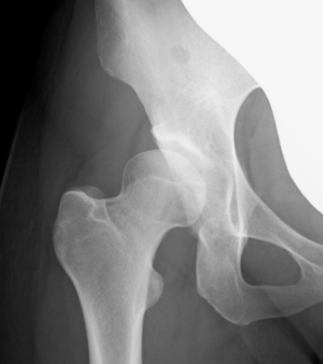 高齢者が転倒した際に受傷しやすい骨折のうちの一つです。痛みのため、歩けなくなることが大半ですが、中には歩行可能な方もいらっしゃいます。保存的治療では治癒は難しい部位で、手術をしない場合は生活レベルが著しく悪くなることや、余命が短くなるとの報告もあり、高齢者であっても手術が推奨されます。リハビリに長期間かかるような無理のかかる手術は体力的にも厳しい面があり、できるだけ低侵襲で疼痛の少ない手術が望まれます。当院では、低侵襲手術を積極的に行っており、短期間での退院も可能になっています。骨粗鬆症がベースにあることが多く、骨粗鬆症の治療もあわせて行うことが重要です。